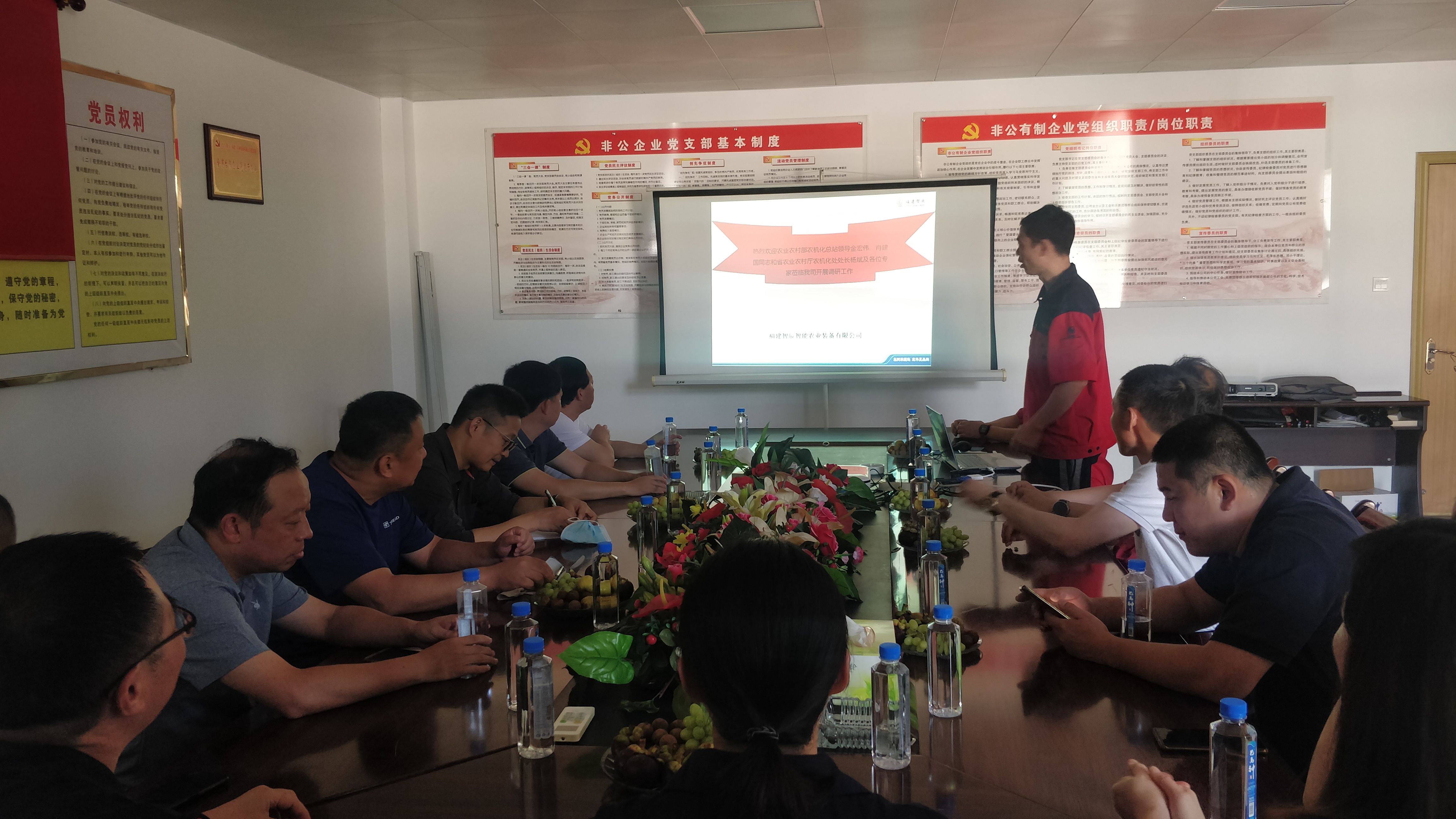 9月11日下午,農(nóng)業(yè)農(nóng)村部農(nóng)機(jī)化總站金紅偉、肖建國和福建省農(nóng)業(yè)農(nóng)村廳農(nóng)機(jī)化處處長楊斌等領(lǐng)導(dǎo)、專家一行6人蒞臨我公司調(diào)研養(yǎng)殖機(jī)械的發(fā)展情況。三明市農(nóng)業(yè)機(jī)械化管理中心主任和沙縣區(qū)農(nóng)業(yè)機(jī)械技術(shù)推廣中心主任陪同調(diào)研。公司李董事長、陳總經(jīng)理及部門負(fù)責(zé)人一同接待了來訪領(lǐng)導(dǎo)和專家。