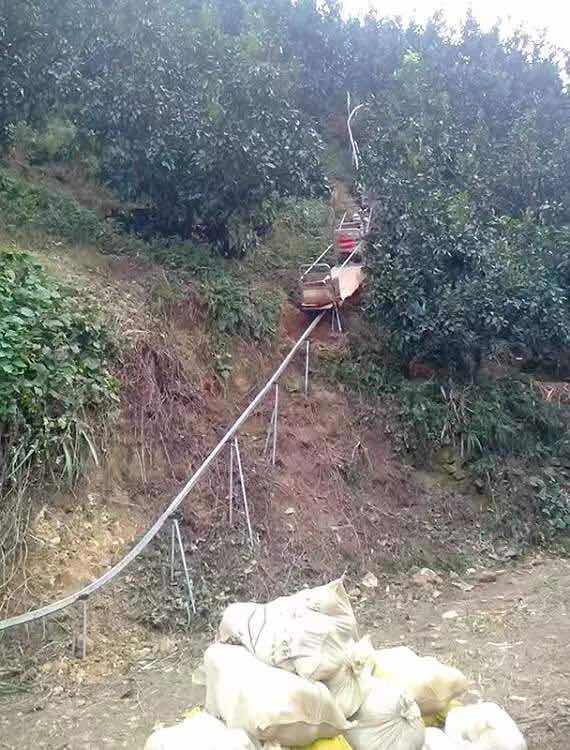 設(shè)備能夠改變原始落后的生產(chǎn)方式降低勞動強度,提高勞動效率,降低果實收獲和果園使用的肥料的運輸成本,產(chǎn)品可以不受地形、坡度、土質(zhì)的影響自由鋪設(shè)軌道實現(xiàn)方便、安全、靈活的運送果實及肥料。運行坡度可達60度,載物總重量可達500公斤,在下雨、下雪引起的沖刷道路及冬季地面結(jié)冰條件下都能長時間正常工作。