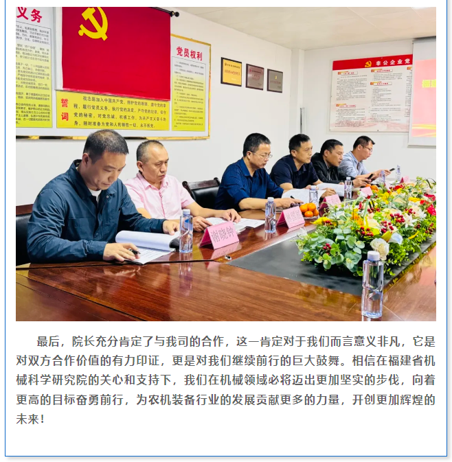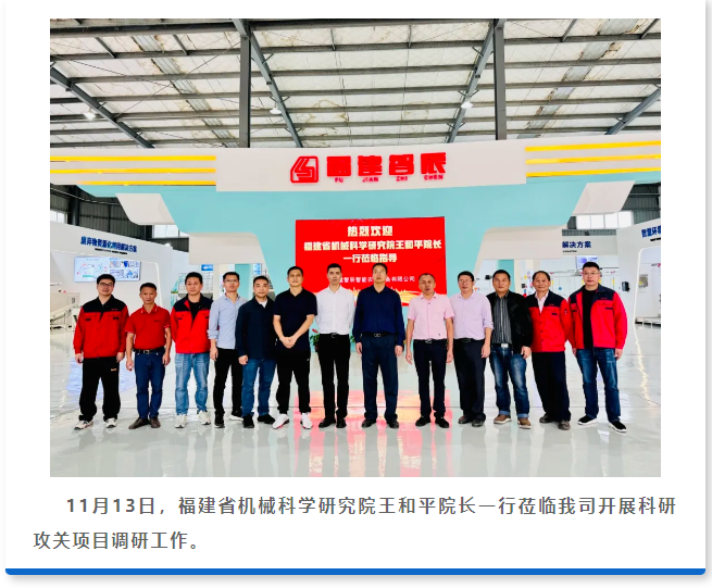 福建省機械科學研究院王和平院長一行到我司開展調研,共促發展